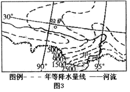 1.图3中年等降水量线明显向北凸出的主要原因是 2.下列关于该区域的叙述,不正确的是3.图中甲地的农业类型