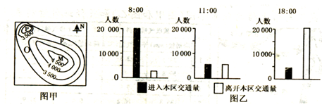 3、单选题 近几年,不断上涨的房价和拥堵的交通备受关注。图甲是我国某城市平均房价等值线(单位:元/m2)分布示意图,图乙是该城市某一区域不同时间的地铁使用量统计图。据此回答19——20题