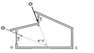①利于夏季遮阳,冬季采光 ②冬至到春分,正午室内的日照面积逐渐增大 ③春分到下至,正午屋檐的遮阳作用逐渐增强 ④利于减少室内能源消耗 A.①②③ B.①②④ C.①③④ D.②③④ 5、单选题 下图是某地地下室采光示意图,①②③箭头分别代表该地二分二至日正午太阳光线照射情况,通过朝南的反光镜的角度调节,可以保证室内获得充足的光线。据此完成下题。 |
