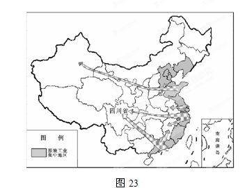 3、综合题 读图23“中国服装产业向中、西部转移示意图”和资料,回答下列问题。(10分)