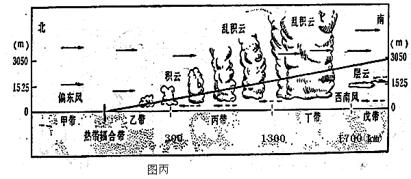 材料二:图丙是热带辐合带的剖面图