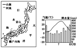 4、单选题 图为日本山河分布示意图,下右图为富山市气温和降水季节分布示意图,回答下面各小题。