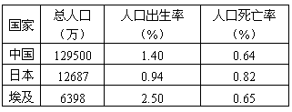 1、综合题 下表是2000年中国、日本、埃及三国的人口统计资料,回答下列问题。
