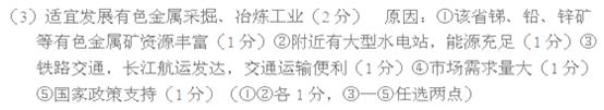 (3)根据甲省的资源状况,说明适宜发展的工业部门及其理由。(6分)?