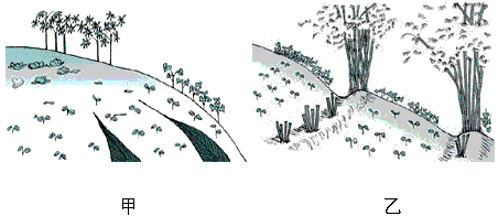 (2)乙,减少水土流失,增加固水能力,又提高农业生产力,为野生动植物提供庇护。