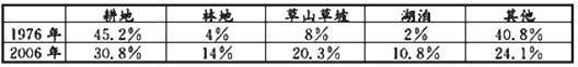 (2)据材料二,分析该县在土地利用中最易出现的生态环境问题是________________。为了有效防治该生态环境问题,实现农业的可持续发展,该县逐步建立了与当地环境协调一致的生态系统。根据表中数据变化情况,例举该县在土地利用上所采取的措施。