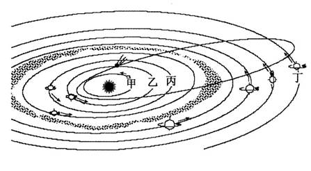 3、单选题 该图是太阳系局部图,黑点表示小行星。回答问题。