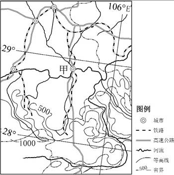 本题解析:此题问题也很直接明确,从有利与不利两个方面分析市周边地区发展糯红高粱种植业的区位条件,根据图中经纬度可以确定该地位于云贵高原上,甲市位于贵州省,再结合图中信息来回答。