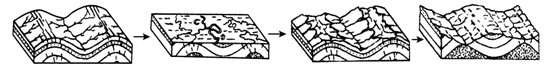 4、单选题 下列景观的发展演变过程,体现出地貌的什么发育过程? ( )