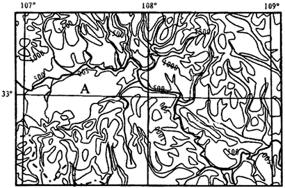 5、单选题 下图是某地等高线地形图,读图回答1—2题。