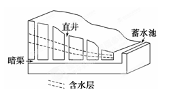 5、单选题 《史记》中记载的“井渠”,就是今天我们所说的坎儿井。坎儿井是开发利用地下水的一种古老的水平集水建筑物,多建于山麓、冲积扇地带。现存的坎儿井,多为清代以来陆续修建的,如今仍浇灌着大片良田。读“坎儿井示意图”,回答下列各题。
