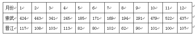 材料二:崇武、金井各月有效风能密度表单位:瓦/米2