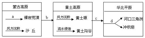 4、单选题 蒙古高原、黄土高原和华北平原因外力作用在成因上具有一定的联系。图中各字母表示不同的主导外力作用类型,读图回答问题:
