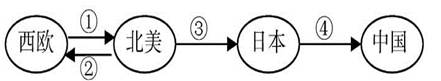 3、单选题 2011年全球汽车产量为8010万辆,中国则以1840万辆的产量成为世界最大的汽车生产国,世界汽车工业出现了第四次转移。结合世界汽车工业四次转移示意图(下图),回答下列问题。