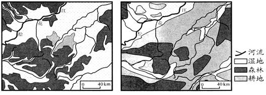 点评:本题以我国三江平原部分地区1950年和2000年土地利用变化图为载体考查我国的区域地理特征和读图分析能力,难度一般。解答时紧密结合左右两幅地图进行分析再根据所学东北地区地理特征知识进行解答。