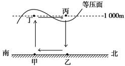 (1)由图可知:丁与丙在同一平面,丁气压大于丙。说明甲地受热空气上升,丁形成高空高压,甲形地地面低压;丙地气压低,说明乙遇冷空气下沉,乙地形成地面高压,丙地形成高空低压。甲、乙、丙、丁四点的气压大小,按从大到小的顺序排列为:乙、甲、丁、丙。