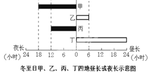 1.读图可知甲地的夜长是18小时,那么昼长是6小时,与乙地等长;丁地冬至日的昼长为24小时,应为南极圈以南地区,其自转的线速度最小;冬至日,我国各地日出东南方;乙地昼短夜长,应为北半球。故选A。