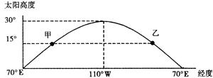 4、单选题 如图是“某日北半球某纬线上不同经度的太阳高度示意图”。读图回答问题。