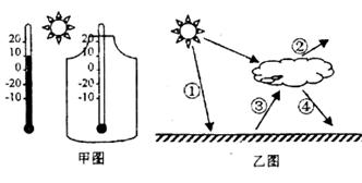 【小题3】“地球变暗”主要是因为大气中的二氧化碳等温室气体对太阳辐射的反射、散射等作用增强,在乙图中②表示这些作用。