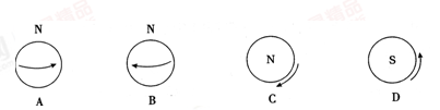 4、单选题 下面四幅图中,能够正确表示地球自转方向的是