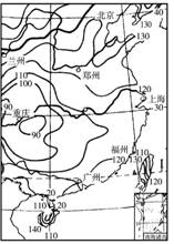 (2)图中台湾岛西侧和东侧的年太阳辐射总量有何差异?________________,原因是____________________________。