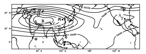 2、单选题 下图为某月100hpa等压面高度(16000米以上)分布图(单位:米)。读图回答下列各题。