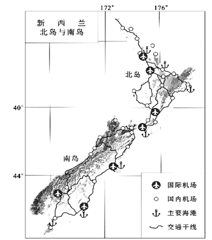 (3)新西兰是印度洋中的岛国,对外联系需要跨越海洋,所以适合水路运输(海运);另外新西兰经济发达,与其它大陆相距遥远,所以航空运输业发达。