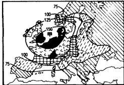 2、单选题 下图为二次大战前,欧洲各地农业集约度的示意图,集约度指数越高,表示农业集约化经营程度越高,请回答下列各题。