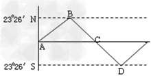 3、单选题 读“太阳直射点回归变化示意图”,回答1~2题。