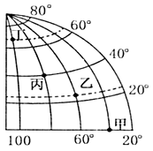 【小题1】若图中丁地为极昼时,图中四地正午太阳高度由大到小的正确排序是( )