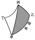5、单选题 下图为经纬网的某部分,丙和乙在同一日期界线上,阴影部分为黑夜,且此日出现极昼的最低纬线上的正午太阳高度为30°,读图完成下列小题。