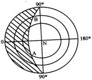 ![]() A.a点风向为偏东风 B.A为北半球反气旋中心 C.A为南半球低压中心 D.a等压线数值为998 3、综合题 下图日历中所示夏至时刻是“北京时间”,回答下列问题(12分) 4、单选题 读以北极点N为中心的经纬网局部示意图,NO、NA、NB表示经线,且NA、NO及NB、NO间的经度差均为60°,NO处对应的经线地方时始终为0时。某执行测绘任务的飞机于甲地(165°W)起飞时NA处恰好是180°经线,于乙地(135°E)降落时NB处也恰好是180°经线。据此回答以下问题。 |