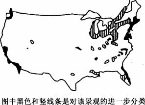 5、单选题 下图是北美部分地区某种人文景观的分布示意图。分析此图,完成: