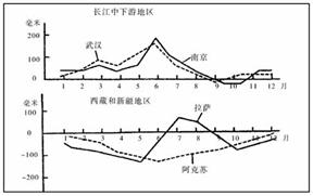 1.长江中下游地区明显缺水的月份是2.关于西藏和新疆地区水分盈亏的叙述,正确的是