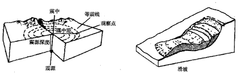 1、单选题 下图为地震、滑坡两种地质灾害示意图,读图回答1—2题。