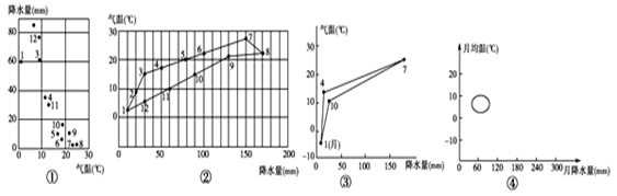1.图中四地区气候类型可能是2.四地区中气候全年温和湿润的是