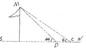 3、单选题 图中MC、MD分别为旗杆一年正午投影最长和最短时的影长,求该地的纬度:
