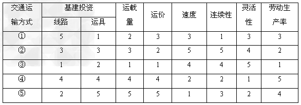 1、单选题 下表中数字1~5表示海运、河运、航空、公路、铁路5种交通运输方式优劣的大体排序(“1→5”表示“优→劣”)。分析表格数据,完成1~2题。
