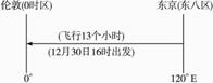 2、单选题 一飞机由北京于2005年12月30日16时飞往伦敦,需飞行13小时,到达伦敦(0时区)时当地时间是