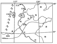 (1)简要分析图中800mm等降水量线东段(运河以东)向北凸出的主要原因。(1分)