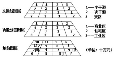 4、单选题 下图为某城市部分地区经过数字化处理的“交通线、功能分区、地价”图。回答1~2题。