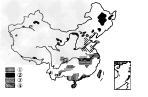 4、单选题 下面是我国粮、糖、棉、油料作物商品性生产基地分布图,据此回答1~2题。