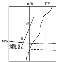 小题2:结合前面分析,该洋流位于大陆西岸,中低纬度地区,应是寒流。根据经纬度可以判断是加那利寒流,寒流对沿岸气候有降温、减湿的作用,A错。不是降低了干的程度,是增加了干的程度,B错。降温,增加了寒冷程度,C错。减湿,加剧了干燥状况,D对。
