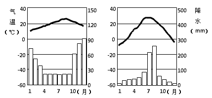 5、单选题 2004年和2008年夏季奥运会将分别在雅典和北京举行,下图是两地的气候资料。读图回答1—2题。