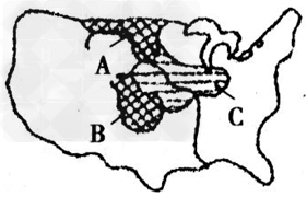 5、综合题 读美国本土主要农业带分布图,回答有关问题。