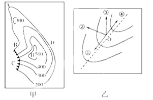 【小题1】图中若甲图为某山区等高线地形图(单位:米),且该地多岩崩和泥石流等地质灾害,图中最易发生泥石流灾害的地点是( )