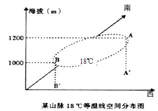 B.18℃等温线在A、B处分布的差异,主要是森林覆盖率的差异导致的