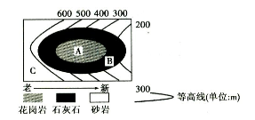 【小题2】在内力作用下,一般背斜成山,向斜成谷。但是在背斜顶部受张力影响,在外力侵蚀作用下,顶部侵蚀成谷地,而向斜构造槽部受挤压,易成山。