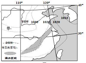 1.由图中信息可以判断,甲为高压中心,是西北太平洋高压的一个分支,4月开始西伸北进。