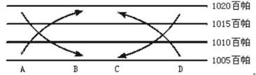 3、单选题 读“某地区某日海平面气压分布图”,完成下题。